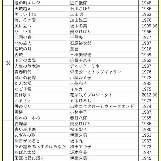 昭和100年を記念して昨年の全国大会や県大会で実施した「大正琴愛好者が選ぶ人生の応援歌昭和歌謡100選」のアンケートは、608件、252曲の投票をいただきました。 1位の「川の流れのように」を含め、平成以降に発売された曲…