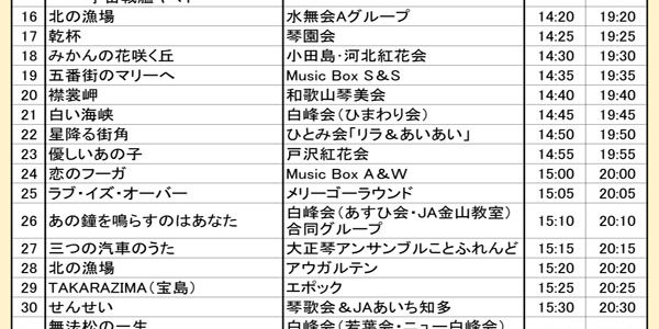 時間が若干前後する場合がありますので、特定のグループの演奏をご覧になるときは、2~3グループ前の時間からご覧ください。