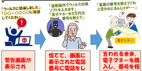 最近はコンビニで電子マネーを購入させる手口も増えています。