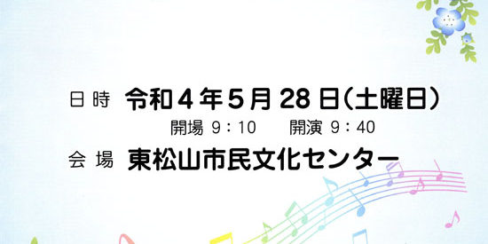 日時:令和4年5月28日(土)開演9:40、終演予定15:15頃