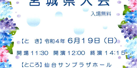 6月19(日)に仙台市の仙台サンプラザホールで「第33回宮城県大会」が開催されます。