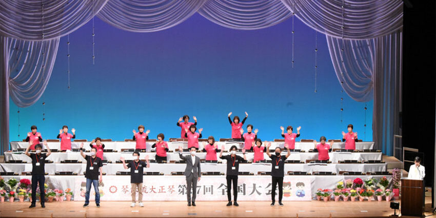 2日間の全国大会もあっという間に終わり、本社講習グループの先生方の演奏が終わると、琴伝流の舞台スタッフも整列して来場された皆様に手を振ってフィナーレ。