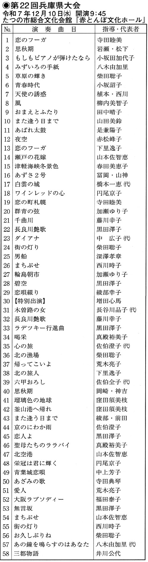 12月10日(水)にたつの市のたつの市総合文化会館「赤とんぼ文化ホール」で「第22回兵庫県大会」が開催されます。