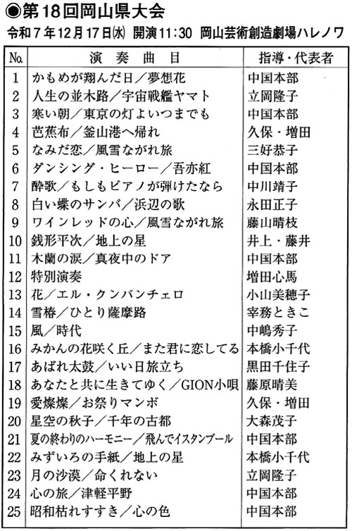 12月17日(水)に岡山市の岡山芸術創造劇場ハレノワで「第18回岡山県大会」が開催されます。