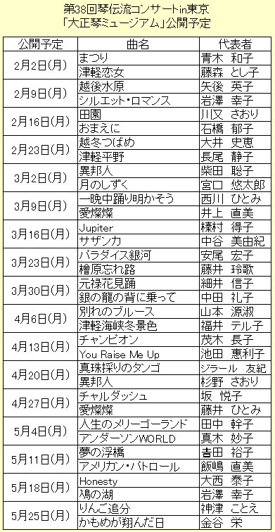 YouTube琴伝流専用チャンネル「大正琴ミュージアム」で、昨年10月10日に八王子市で開催した「第38回琴伝流コンサートin東京」の演奏映像を2月2日(月)より順次公開します。