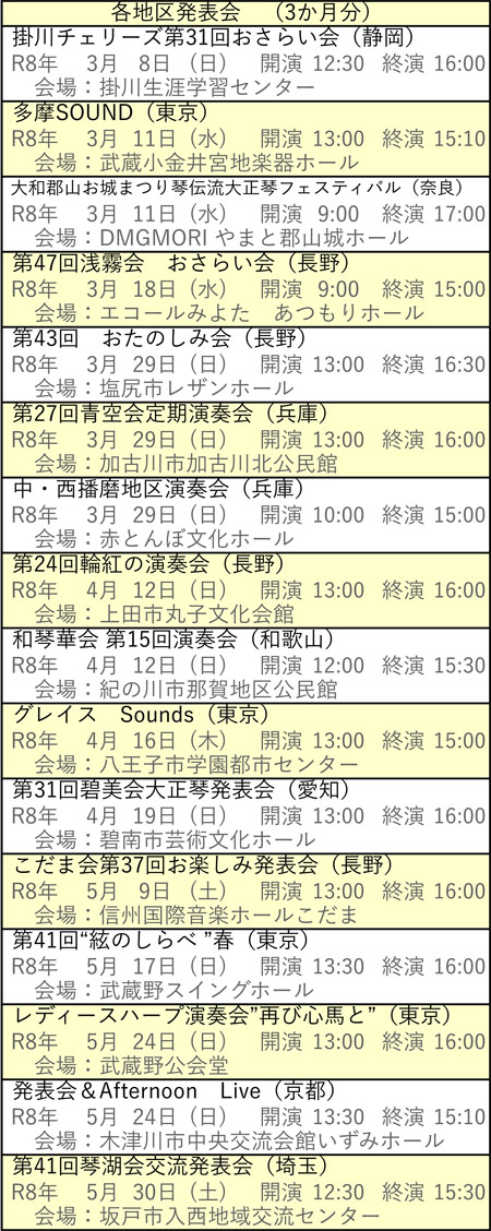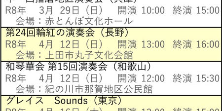 向こう3ヶ月分の全国各地で活動している琴伝流のグループの演奏会をご案内します。