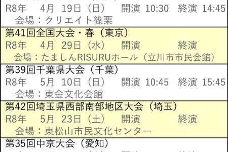 1月162026 演奏会のご案内 全国大会・県大会のご案内 演奏会のご案内2026年1月16日 向こう6ヶ月分の琴伝流および公益社団法人大正琴協会主催の全国大会や県大会をご案内します。 グループが心をひとつにして演奏する大正琴音楽をお楽しみください。 ※開演・終演時間は都合により変更する場合があります。 ※「お知ら… 続きを読む