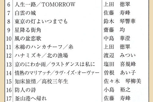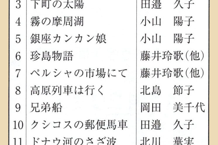 カタログ更新後に新しく発売された曲集・歌集・ピース楽譜をお知らせします。 ◆印が新しいご案内です。 【教本】 更新後の追加はありません 【曲集】 更新後の追加はありません 【歌集価格改定】 更新後の追加…