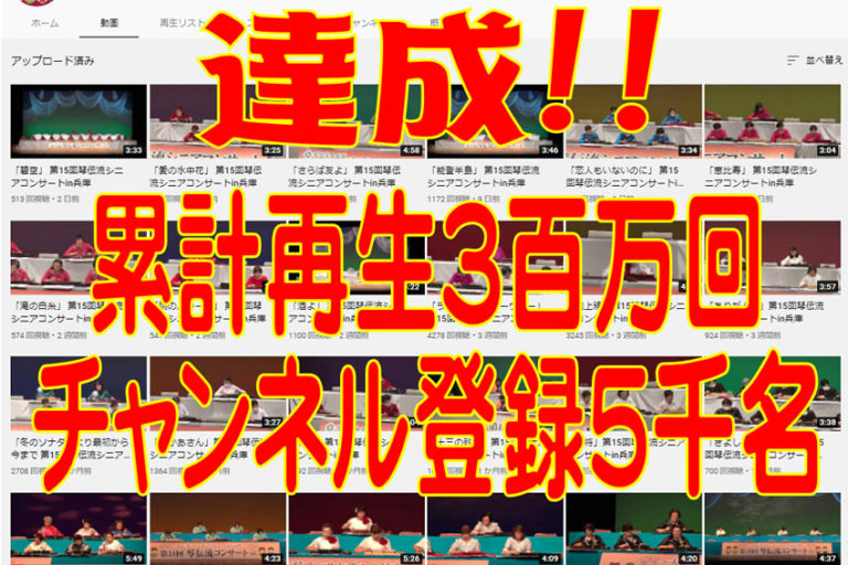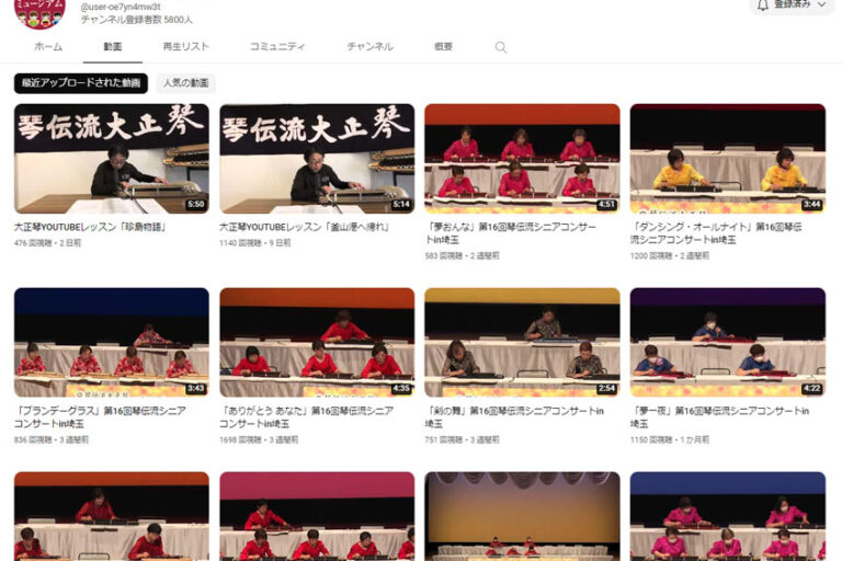 YouTube琴伝流専用チャンネル「大正琴ミュージアム」の累計再生回数が270万回を突破しました。 700を超える動画数は大正琴業界で他を寄せ付けない圧倒的な本数です。 その大半を占める事前審査を通過したグループが出演す…