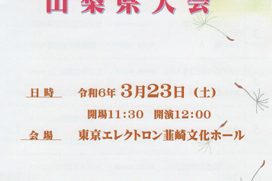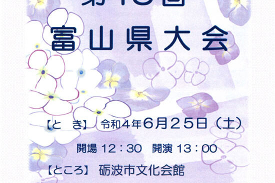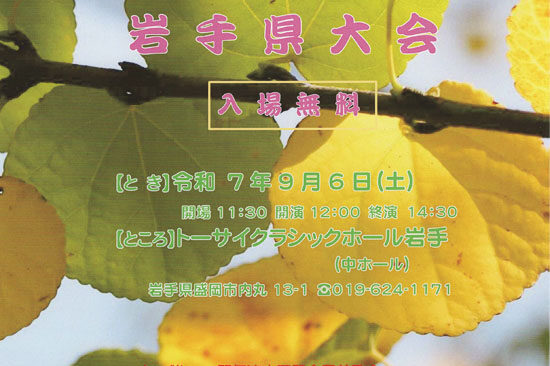 11月24日(水)に海老名市の海老名市文化会館で、「第32回神奈川県大会」が開催されます。 新型コロナ感染予防策を施しての大会のため、客席数に制限がありますがお近くの方はお気軽にお越しください。 なお、熱のある方や体調の…