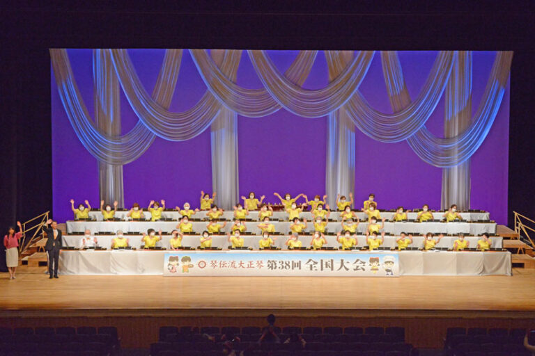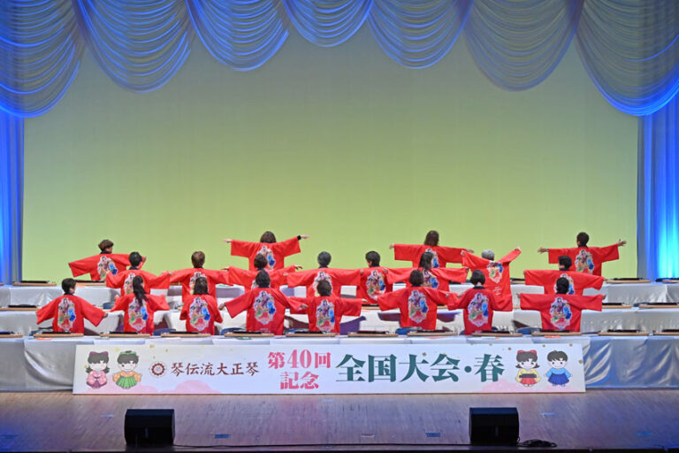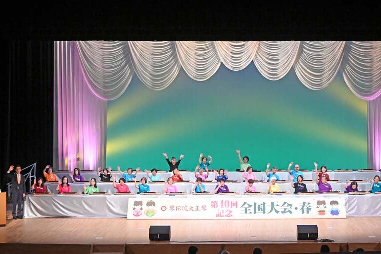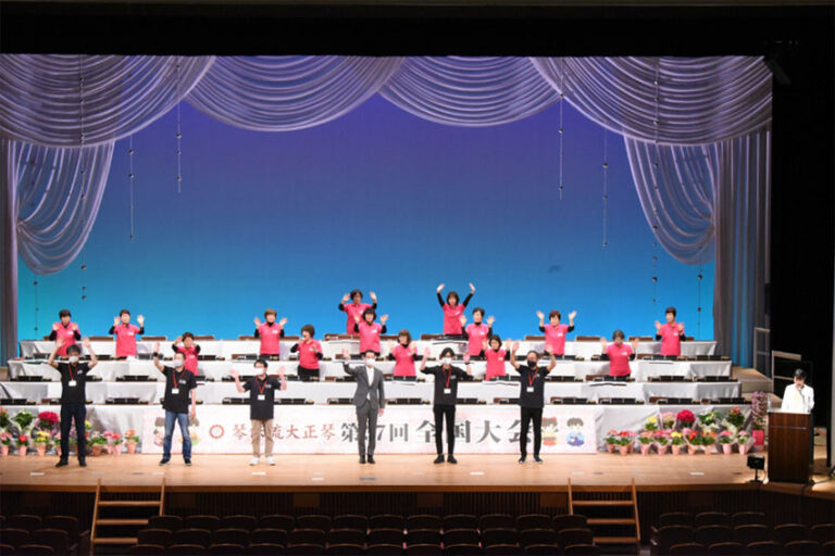 最後のグループの演奏が終わり、会長も舞台に出て手を振ってフィナーレ。 コロナ禍以降、全国大会のスタイルが一変しましたが、県を越えて琴伝流の仲間が交流する大切な大会であることに変わりありません。 今後も少人数でも参加できる…