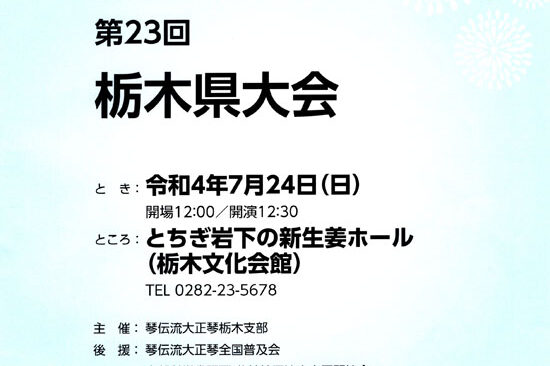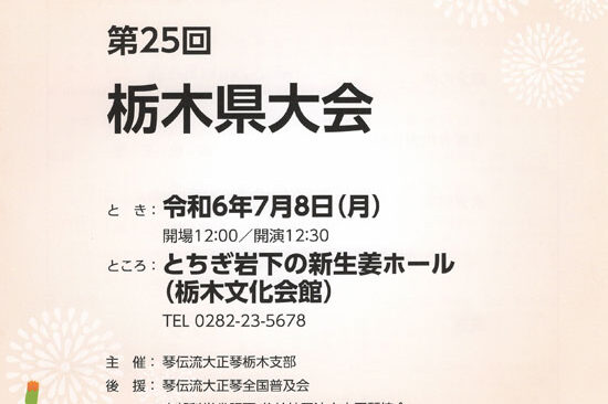 12月10日(水)にたつの市のたつの市総合文化会館「赤とんぼ文化ホール」で「第22回兵庫県大会」が開催されます。 今年は3月12日の沖縄県大会で琴伝流演奏会がスタートし、12月の4つの県大会で一年が終わります。 今年も仲…