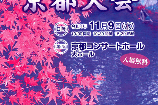11月6日(土)に長岡京市の長岡京記念文化会館で、「第23回京都大会」が開催されます。 新型コロナ感染予防策を施しての大会のため、客席数に制限がありますがお近くの方はお気軽にお越しください。 なお、熱のある方や体調の悪い…