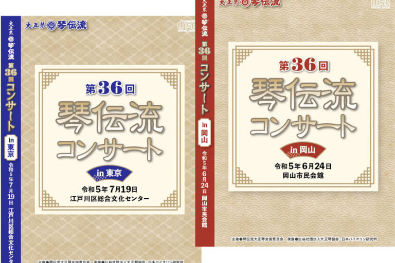 「第34回琴伝流コンサート」のCDを発売します。例年は会場ごとにCD2枚セットで販売していますが、今年は出場グループが少なかったため会場ごとに分けずに、「in東京」「in静岡」を各1枚に収めた2枚セットでの販売となります…