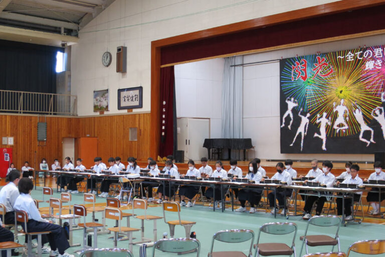 長野県伊那市の西箕輪中学校の文化祭「第54回紅葉祭」で、10月2日(土)に総合学習の発表があり、3年生の約20名が大正琴で「剣の舞」と「千本桜」の演奏を披露しました。 6月から9月までの短い練習期間に加えコロナ禍で十分な…