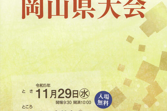 11月16日(火)に倉敷市の倉敷芸文館で、「第16回岡山県大会」が開催されます。 新型コロナ感染予防策を施しての大会のため、客席数に制限がありますがお近くの方はお気軽にお越しください。 なお、熱のある方や体調の悪い方のご…