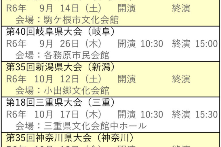8月22日(日)に予定していました「第37回岐阜県大会」は、開催地の各務原市だけでなく、岐阜市等多くの出場者がお住いの地域も新型コロナウイルスのまん延防止等重点措置の対象となったことをから中止とします。 ご来場を予定され…