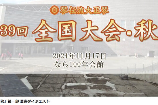 10月18日(土)に高槻市で開催した「琴伝流大正琴第40回記念全国大会・秋」のダイジェスト映像を、11月24日(月)からYouTube琴伝流専用チャンネル「大正琴ミュージアムで公開します。 出演全グループの演奏の様子や、…