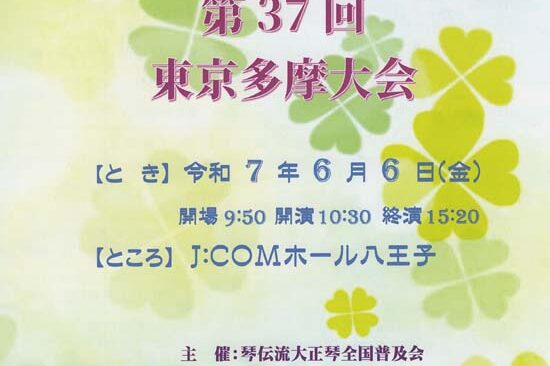 10月10日(金)に八王子市の八王子芸術文化会館・いちょうホールで「第38回琴伝流コンサートin東京」が開催されます。 琴伝流関東本部のある八王子市で初めて開催する琴伝流コンサートです。 当日券も若干ありますので、観覧ご…