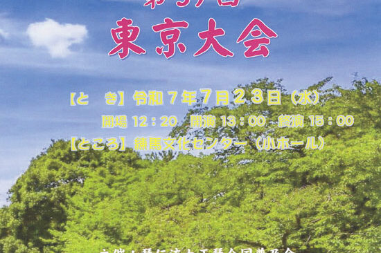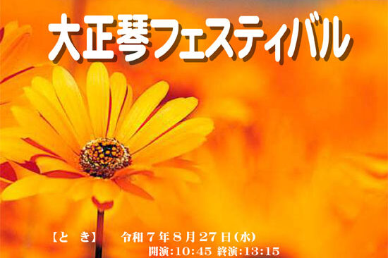 7月23日(水)に練馬区の練馬文化センターで「第39回東京大会」が開催されます。 外は猛暑でも、会場内はエアコンが効いて快適です。 大正琴を聴きたいという方はもちろん、涼しいところでゆっくりしたいという方もお気軽にご来場…