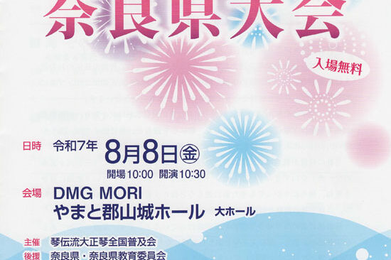 8月8日(金)に大和郡山市のDMG MORIやまと郡山城ホールで「第8奈良県大会」が開催されます。 外は猛暑でも、会場内はエアコンが効いて快適です。 大正琴を聴きたいという方はもちろん、涼しいところでゆっくりしたいという…
