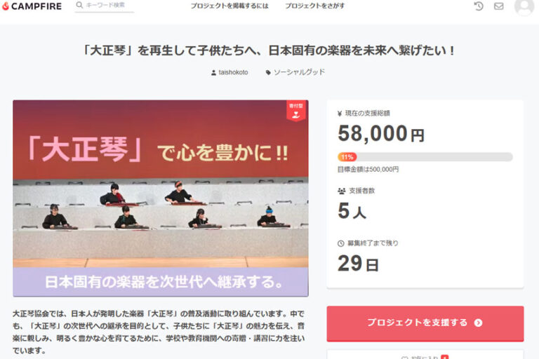 公益社団法人大正琴協会では、大正琴音楽文化の次世代継承事業支援のためのクラウドファンディングを募集中です。 公益社団法人への寄附は、会社や個人の税額控除等のメリットもあります。 まだ目標額に届かず苦戦中ですので、既にご寄…