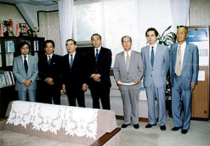 設立許可証を受取る琴伝流初代会長 (右から3人目)