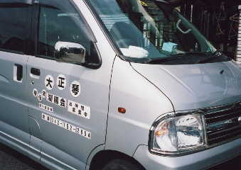 門下先生方の会員募集は積極的。写真のように自家用車の後ろと横にステッカーを貼って、いざ出陣!